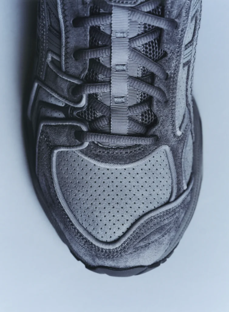 Le résultat tient moins du coup de force que de la précision. Browne ne transforme pas la GEL-Kayano 14 en objet de salon. Il garde le bruit du runner, mais l’entoure d’indices plus habillés. Highsnobiety parle d’une sneaker presque taillée comme un vêtement technique. La formule dit assez bien ce qui se joue ici : la chaussure garde sa vitesse visuelle, mais elle passe au fer. Le ruban tricolore au talon ou au lace catcher agit comme un rappel de maison, pas comme un logo qui crie. C’est une collaboration qui préfère la couture au stabilo.