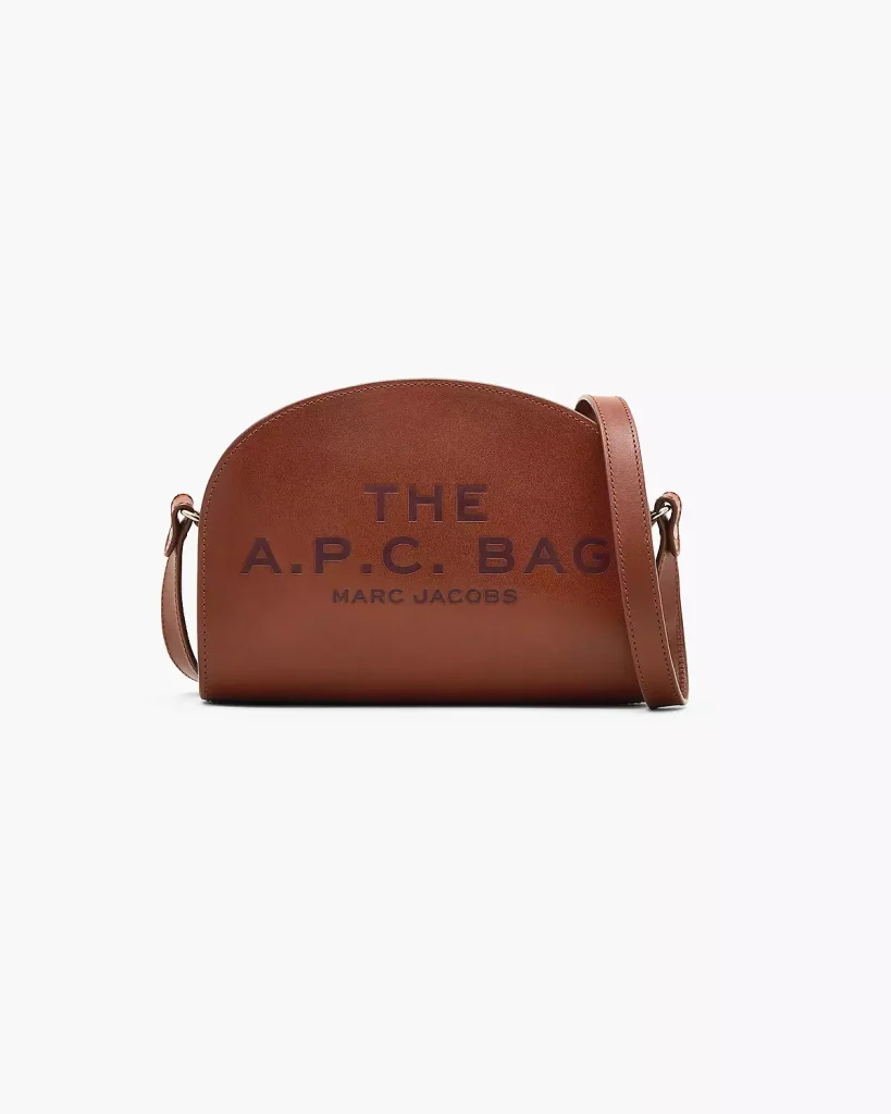 De l’autre, le Demi-Lune, sac iconique d’A.P.C., devient collector. Embossé du logo Marc Jacobs, il mêle luxe discret et design culte. De plus, des modèles hybrides font dialoguer les deux univers : les logos s’entrelacent, les matières se répondent. Comme une conversation entre New York et Paris, en cuir et en toile.