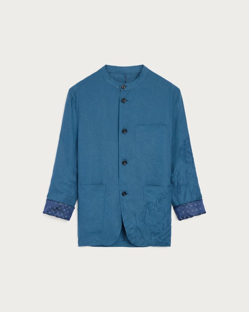 Ce qui fait Berluti, au-delà du fantasme du “gentleman”, c’est cette idée que la couleur peut être un savoir-faire, pas un effet. Vogue revient sur les tonalités bijou (verts, rouges, bleus) et sur une patine “fiamma” appliquée à une veste à col mandarin, avec une pointe de cachemire rose poussiéreux : rien de tapageur, mais une singularité qui se lit dans la profondeur plutôt que dans le contraste. Et si l’on veut replacer ce vocabulaire dans une histoire plus longue, Berluti lui-même rappelle ses origines parisiennes (atelier fondé en 1929 après le parcours italien de son fondateur) et l’ADN artisanal de la maison.