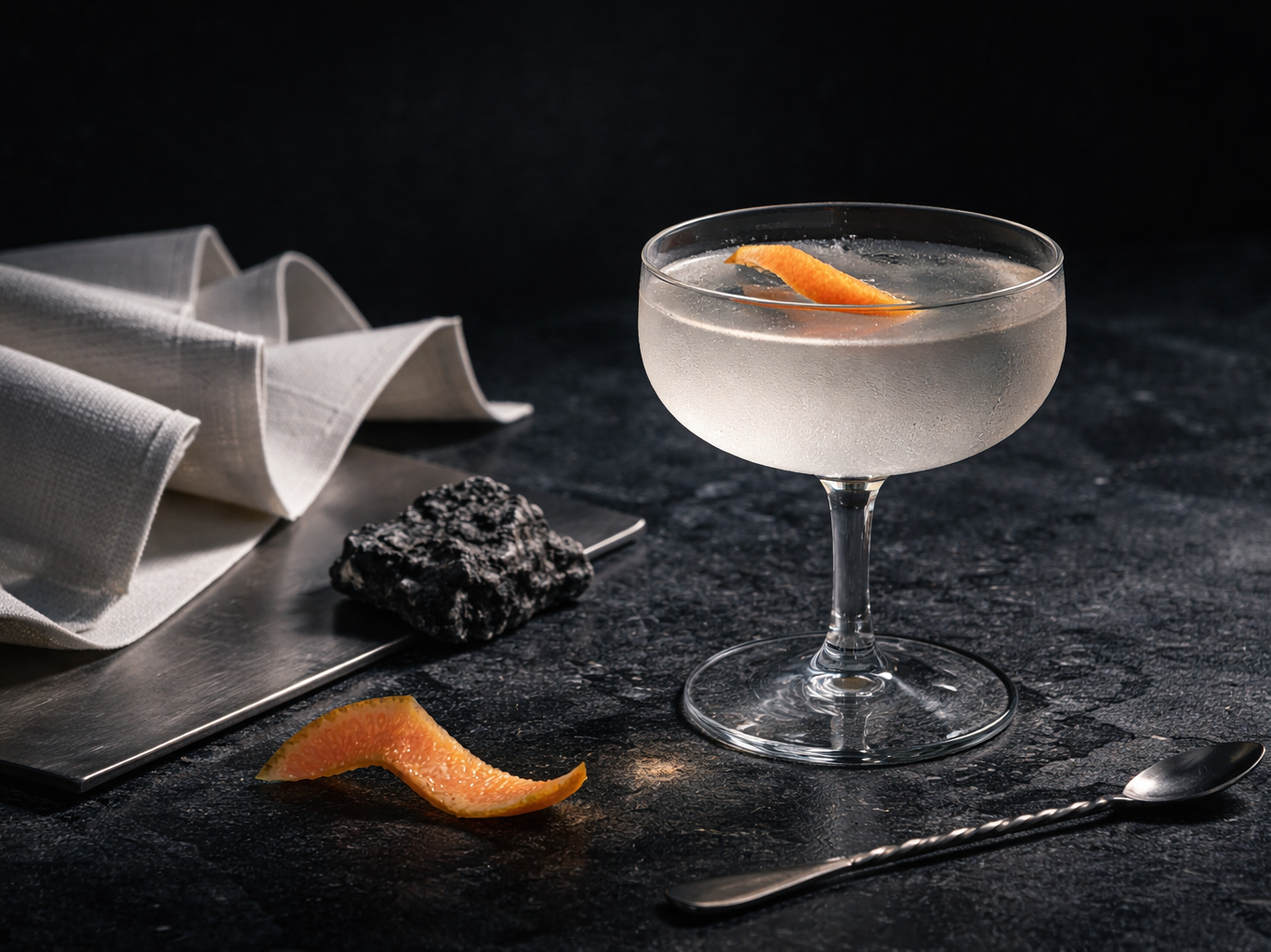 Le verre doit être très froid, presque strict au premier contact. C’est important. L’attaque doit sembler droite, presque coupante, puis quelque chose s’arrondit sans devenir tendre. Le pamplemousse travaille comme les cordes du disque : il ouvre, mais en gardant une tension dans le fond. L’aquavit, lui, joue le rôle moins visible des beats, avec une charpente qui reste sèche, terreuse, un peu saline selon les marques. Ce n’est pas un cocktail charmeur. C’est un cocktail de maintien. Il tient la joue, il garde la nuque droite, puis il laisse apparaître une chaleur plus lente, plus sourde. À boire assez tôt dans la nuit, avec Jóga ou Hunter, quand le disque n’a pas encore cédé un centimètre.