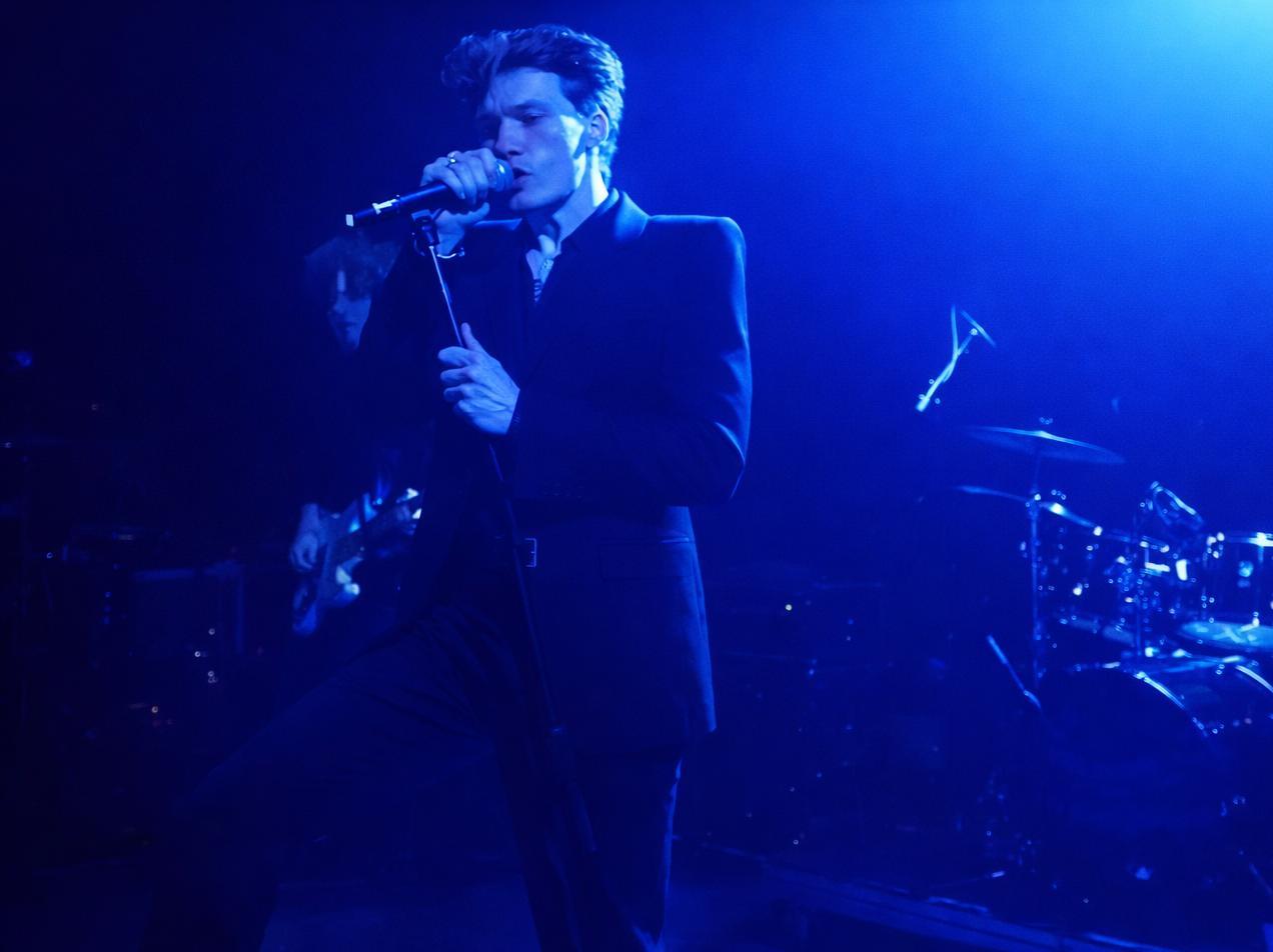 Au centre, il y a Wes Leavins. Et là, il n’y a pas grand-chose à discuter. La voix est monstrueuse, au sens exact du terme : ample, mobile, capable de pousser les vocalises très loin sans donner l’impression de forcer. C’est assez rare pour être noté sans détour. Sur disque, son chant fait penser à Morrissey. Sur scène, beaucoup moins. Heureusement. La comparaison se retire un peu dès que le corps entre en jeu. Leavins n’apparaît pas comme une simple chambre d’écho bien élevée pour amateurs de citations pop. Il impose autre chose. Une présence plus directe. Moins affectée. Plus mobile aussi.