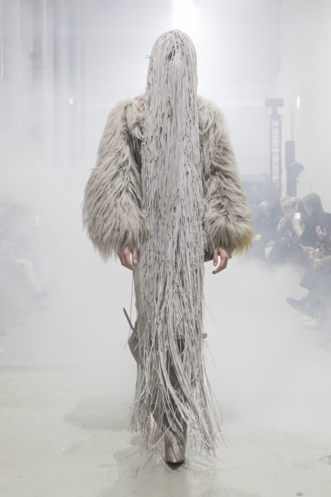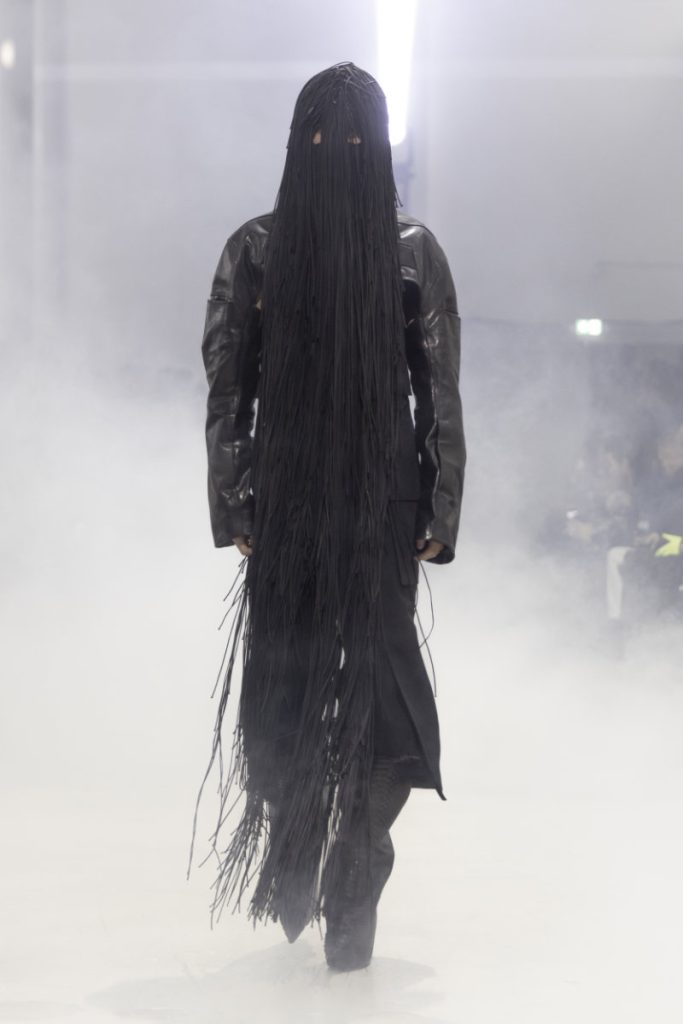 Ce qui fascine chez Owens, c’est qu’il reste un empire personnel avec des réflexes d’artisan. Vogue rappelle qu’il continue à dessiner seul, qu’il n’a “jamais eu de design room”, et que sa façon de refuser la délégation tient presque d’une éthique : si quelqu’un a une vision, autant qu’il la suive pour lui-même. Et pourtant, le texte note aussi un tournant : Owens ouvre davantage les frontières de sa marque à des collaborateurs, allant jusqu’à citer leurs handles dans les notes de presse, comme s’il voulait que la paternité devienne traçable, distribuée, assumée. Même la fabrication participe de ce récit : Vogue mentionne des laines stiffened/felted faites à la main en Rajasthan avec laine himalayenne, des manteaux de cachemire produits avec des artisans identifiés, des masques-foulards construits en corde cirée à l’échelle absurde. Ce n’est pas de la transparence “responsable” au sens marketing ; c’est une façon de dire que l’autorité esthétique peut aussi passer par le crédit, par la chaîne, par l’aveu des mains.