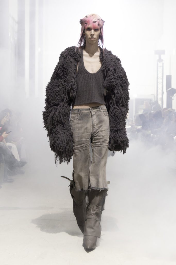 Rick Owens Automne/Hiver 2026-2027 laisse une impression rare : celle d’un show qui ne cherche pas à “dire” le monde, mais à le faire sentir dans le corps, comme une irritation persistante. Dans cette brume parfumée, le pouvoir est partout — et précisément pour cela, il devient caricature, costume, matière à être retournée contre lui-même. Et c’est peut-être la thèse la plus juste d’Owens : on ne sort pas de l’époque en la fuyant ; on la traverse en la rendant impossible à ignorer.