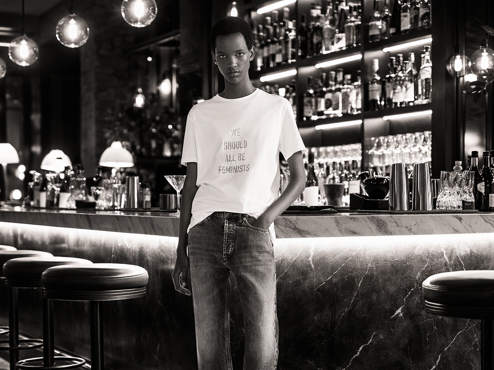 On a beaucoup décrit le T-shirt comme un geste utile, parce qu’il rend le mot « féministe » portable, simple, partageable. C’est vrai, au moins au niveau du signal. Le vêtement met le terme au centre, le sort des dissertations et des plateaux pour l’installer dans la rue, dans le champ de la mode, dans l’album photo collectif d’une saison. Il agit comme un panneau, et un panneau attire des regards. Mais précisément parce qu’il est panneau, il est aussi surface de projection: chacun y lit son propre féminisme, ou son propre agacement.