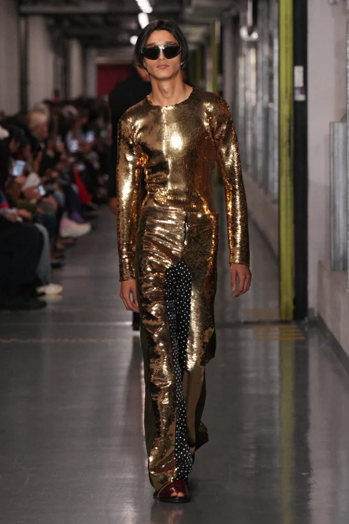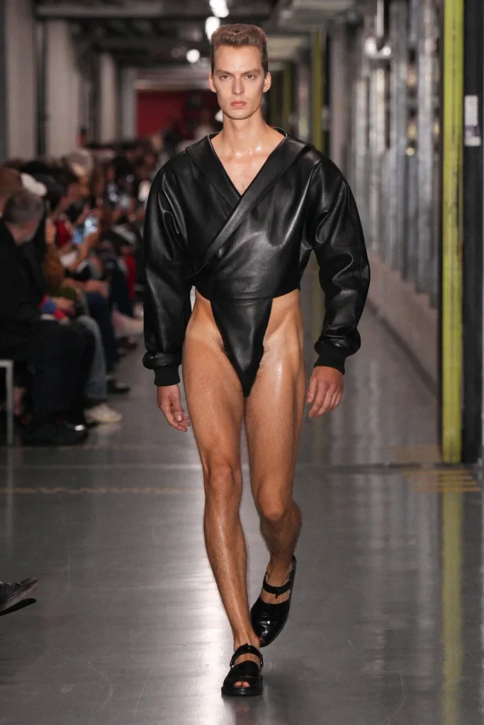 Duran Lantink, 35 ans, est un choix audacieux. Connu pour son approche anti-consumériste et son goût pour le détournement, il incarne une génération qui voit la mode comme un acte politique autant qu’esthétique. Pour son premier défilé, il a choisi de rendre hommage à la ligne « Junior », lancée par Gaultier à la fin des années 80 — une collection jeune, rebelle, pensée pour une jeunesse urbaine et décomplexée. Sauf qu’en 2025, la jeunesse n’a plus les mêmes codes, ni les mêmes tabous.