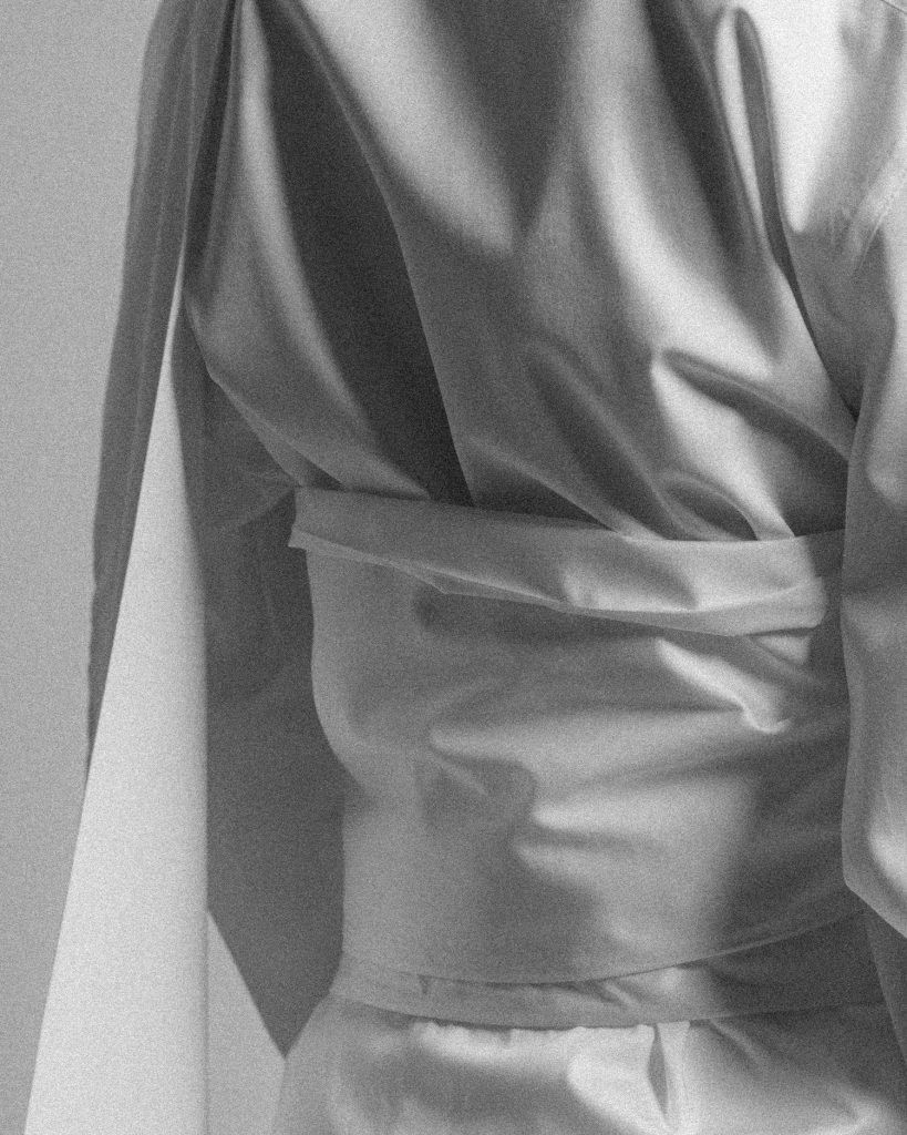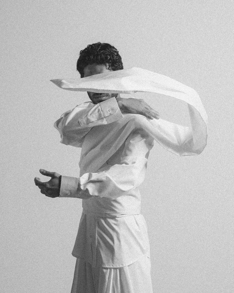 Le travail d’Ahmed Hassan repose sur l’exploration des principes traditionnels, non comme des références décoratives, mais comme des systèmes porteurs de significations. Les constructions, les volumes, les usages sont abordés comme des archives vivantes. Chaque pièce est pensée comme le résultat d’un processus de recherche : comprendre d’où vient une forme, pourquoi elle existe, ce qu’elle produisait sur le corps et dans l’espace social, avant d’en proposer une lecture contemporaine. Cette méthode confère au vêtement une densité conceptuelle, sans le détacher de sa fonction première : être porté.