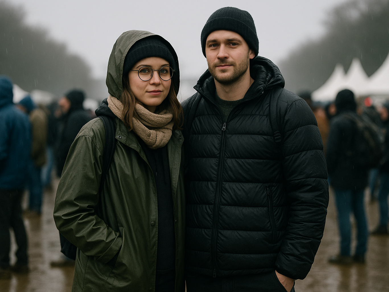 On croise aussi des looks plus conceptuels : imperméables translucides façon “galerie d’art sous la pluie”, écharpes immenses qui s’enroulent comme des cocons émotionnels, pantalons larges qui prennent l’eau à une vitesse dramatique. Et bien sûr, les chaussures : toujours pratiques. Ici, on ne voit pas des sneakers blanches immaculées. Non, non. Aux Trans, les chaussures sont, pensées pour l’héroïsme et prêtes à mourir pour la cause culturelle. Boots, docs, semelles épaisses : le pied rennais ne connaît pas la peur. Les Trans, ce n’est pas Rock en Seine : on vient pour durer, pas pour rester propre.