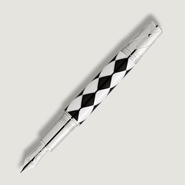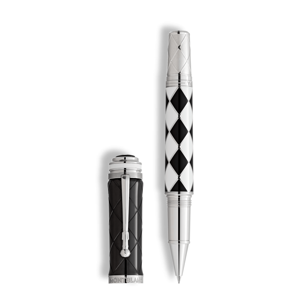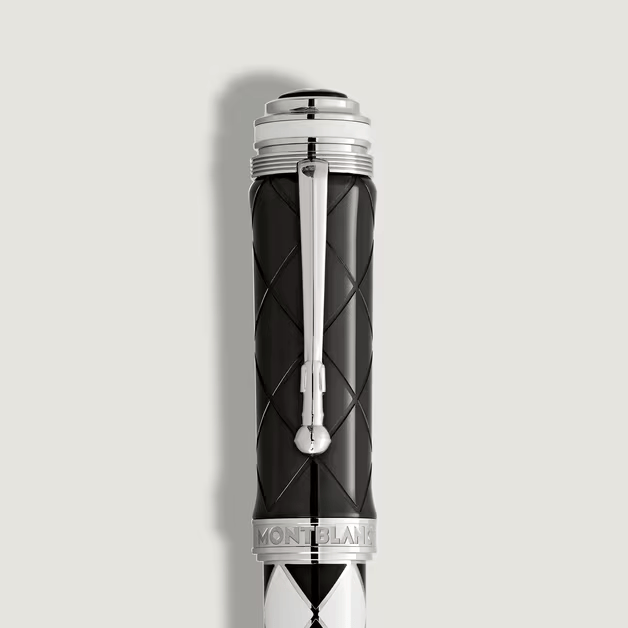 Tout commence par un éclat de scène : 1975, A Night at the Opera fait entrer Queen dans la légende. Presque cinquante ans plus tard, Montblanc s’en empare pour en faire un stylo rare — 1 975 exemplaires, clin d’œil appuyé à cette année charnière. Le corps du modèle, laqué de noir et de blanc, évoque aussitôt le costume arlequin de Freddie Mercury : géométrie impeccable, audace assumée. Le capuchon, lui, porte les visages stylisés des quatre musiciens, tandis que la bague gravée du titre de l’album achève le clin d’œil.